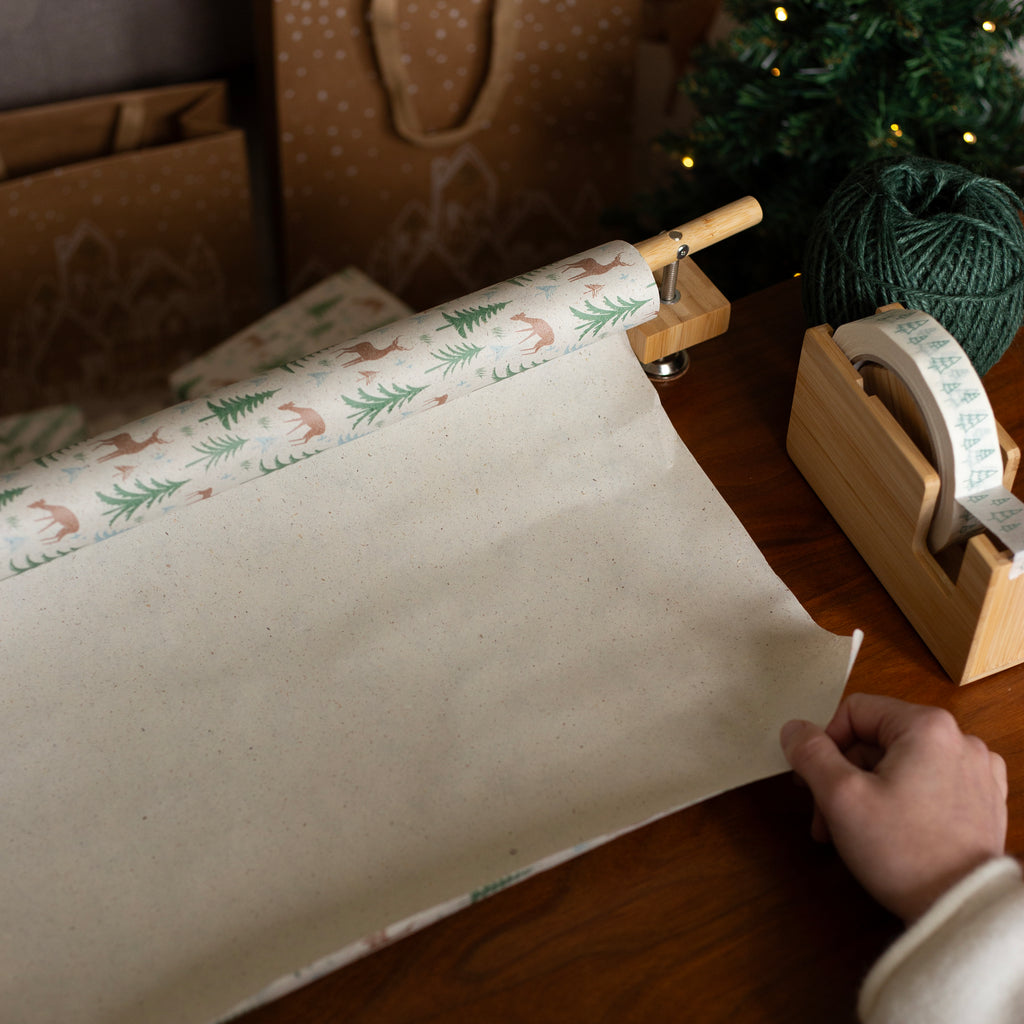 The Bamboo Paper Dispenser is suitable for dispensing wrapping paper of any length on table tops up to 5cm thick.