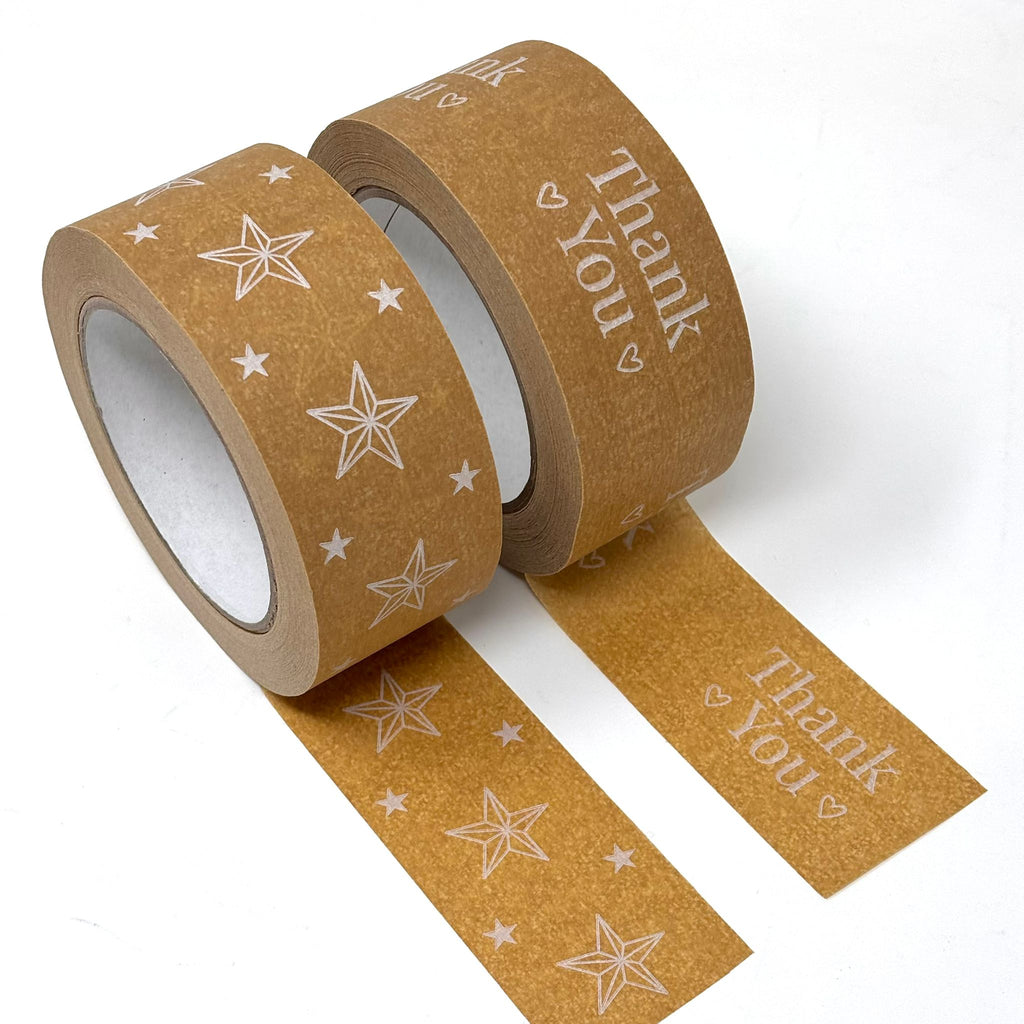 Pack of 2 Rolls of 50m Paper Tape - Stars & Thank You (48mm Wide)