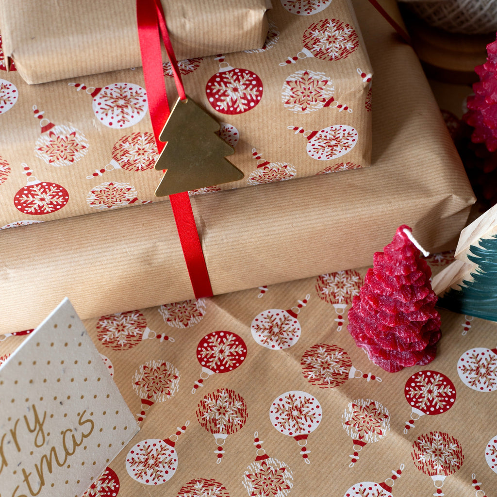 New Christmas gift wrap is here and we couldn't be more excited! This Christmas Decoration design is a festive classic and will ensure your gifts stand out under the tree this festive season! Not only beautiful, this paper is 100% recyclable and PEFC certified so you don't have to sacrifice the planet for pretty wrapping this year. Love these wrapping combos? Recreate by pairing with our Red or Brown Kraft paper and our White twine or Red ribbon. And don't miss our small and medium gift bags in the matching design.