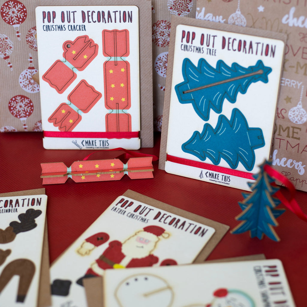 These wooden pop out cards are the perfect card and gift in one! Each comes with a mini greeting card and a flat packed decoration for the recipient to make and cherish for long after the card is gone. They come in a range of designs in both standing and hanging decoration styles so there is sure to be one to suit everyone. Lovingly crafted in the UK the decorations are made from wood pulp board, the accompanying A7 greetings cards are made from 100% recyclable materials. **Please note the cards come in a compostable eco cello for protection**