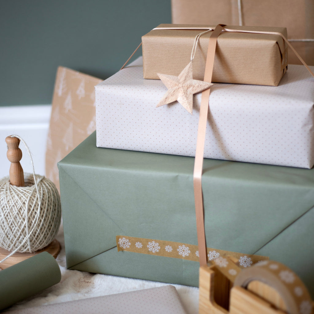 This Light Khaki & Pale Green Duo Kraft wrapping paper is 100% recyclable and PEFC certified. With a stunning colour on each side, the gift wrap options are endless. Mix and match on a present stack or fold over to showcase both colours at once and create a ribbon effect. Or why not add some patterned paper tape, stamps, twine or ribbons to make your gifts really stand out.