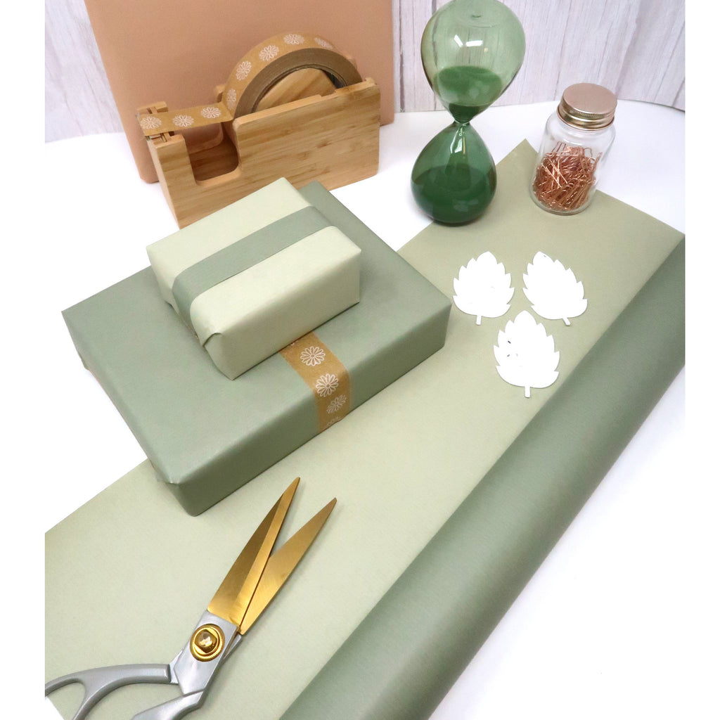 10m Roll Light Khaki & Pale Green Duo Kraft Wrapping Paper