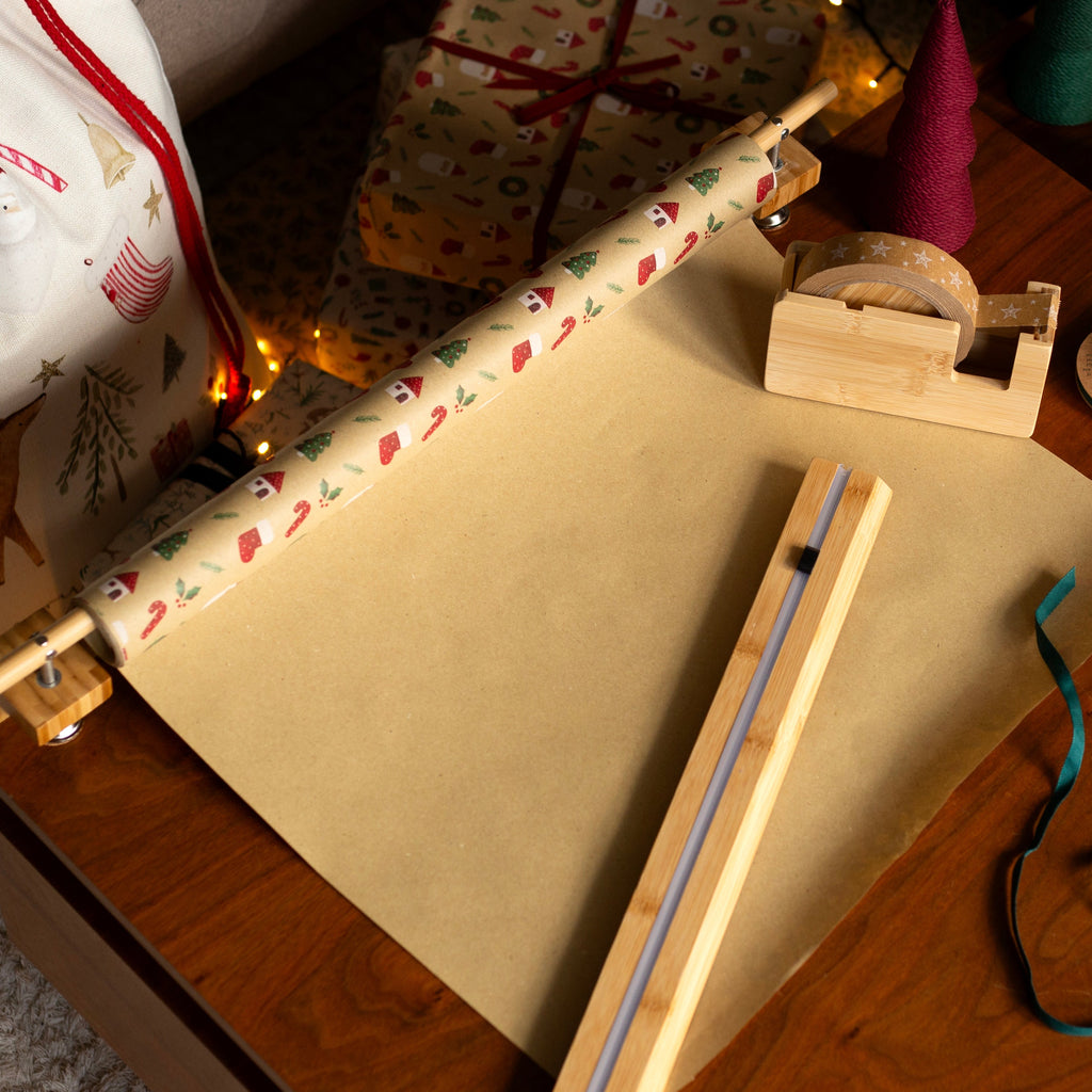 Introducing a BRAND NEW Gift Wrapping station for anyone looking for a space saving option! We have had such a great response since launching out bamboo gift wrapping stations, however we know many of you need something that packs away to pretty much nothing! We know wrapping gifts this time of year can be stressful, so we created this kit to make gift wrapping a breeze! Say goodbye to the days of battling unruly paper rolls and wonky scissor cuts! Our Essential Gift Wrapping Kit includes a 24mm Tape Dispenser, Paper Dispenser and Paper Cutter allowing you to dispense and cut gift wrap and tape with ease. Crafted from elegant bamboo, this bundle combines style and practicality. So whether you want to make the stress of gift wrapping a thing of the past or you are a gift wrapping enthusiast, this is the essential upgrade you've been waiting for!