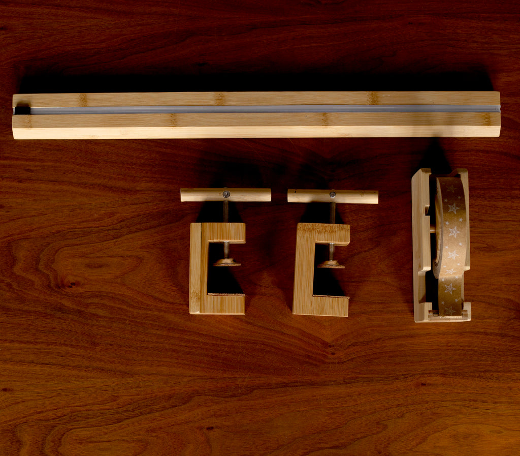 2 x G-Clamp- Made of Bamboo and metal, the clamp has cork pads to protect your table surface.