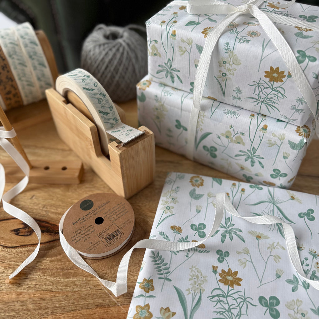 This Flower Meadow wrapping paper is 100% recyclable and PEFC certified. This stunning floral design is perfect for spring and summer gifting! Pair with paper tape, string or ribbon (we love it alongside the cream side of our apricot and cream duo paper and natural jute twine) for the final finishing touch.