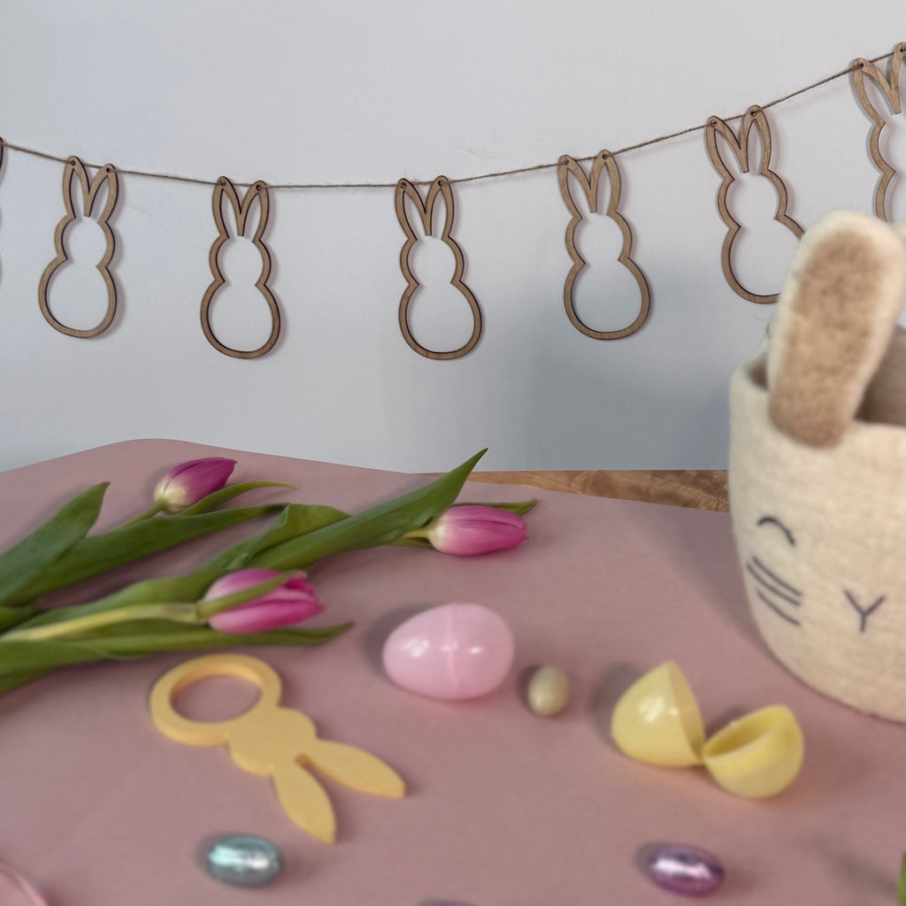 Elevate your Easter fun with our easy to hang wooden bunny bunting. Help create the perfect atmosphere for your Easter party and create a family-friendly display to be remembered