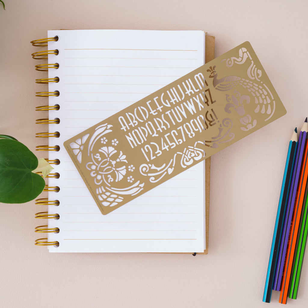 The stencil can be used with sharp pencils, pens, fine liners or even paint! Made with corrosion-resistant brass the stencil is durable and easy to wipe clean