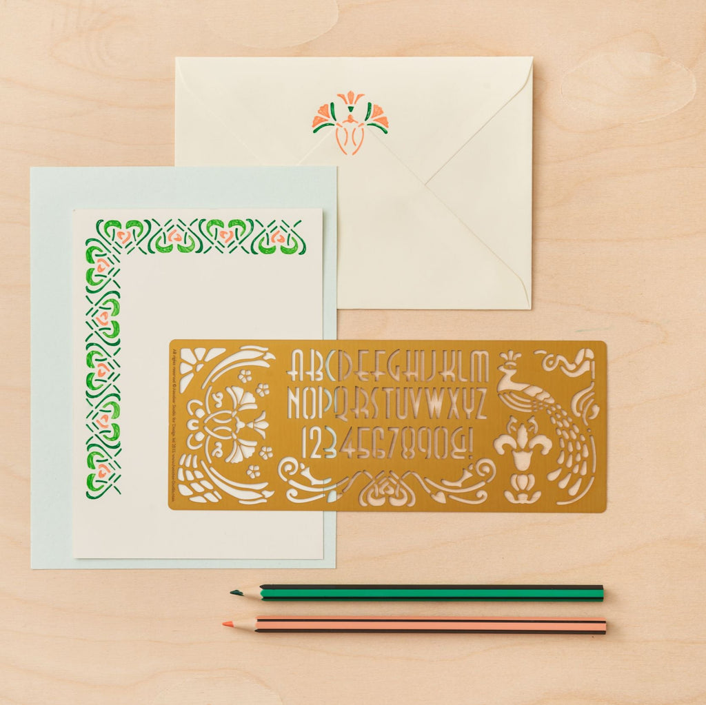 Our Another Studio Art Noveau stencil is the perfect addition to your craft & stationery supplies. Use it to create bespoke invitations and cards or to decorate gift wrap or letterheads. Or as a fun way to personalise notebooks & bullet journals! This stencil would also make a gorgeous gift for the crafty or stationery obsessed person in your life.