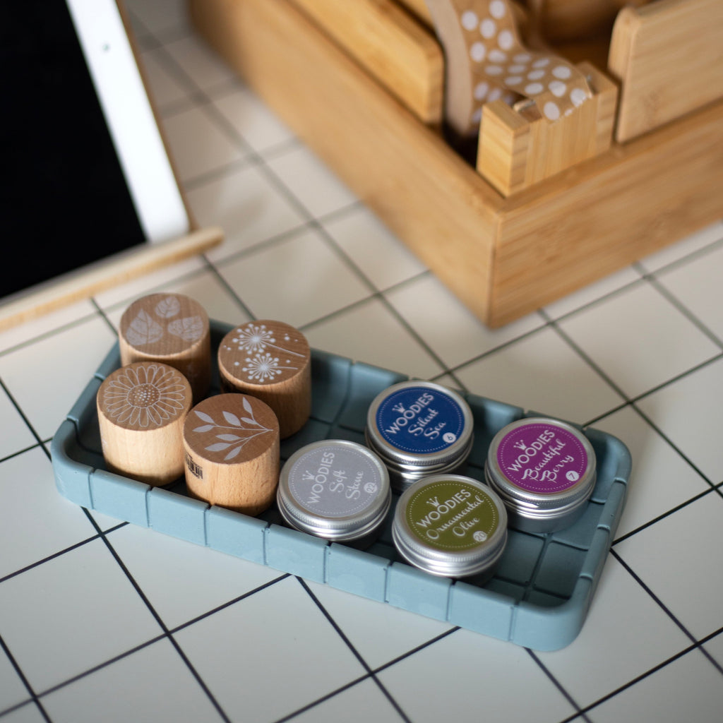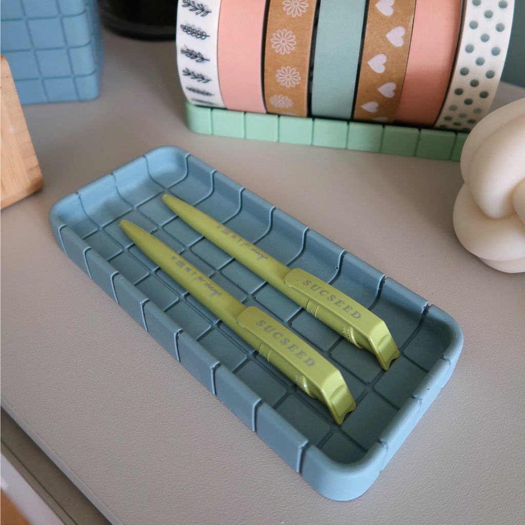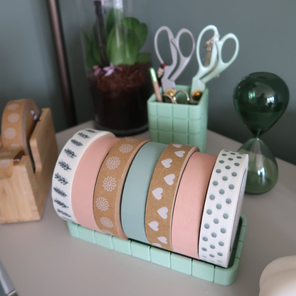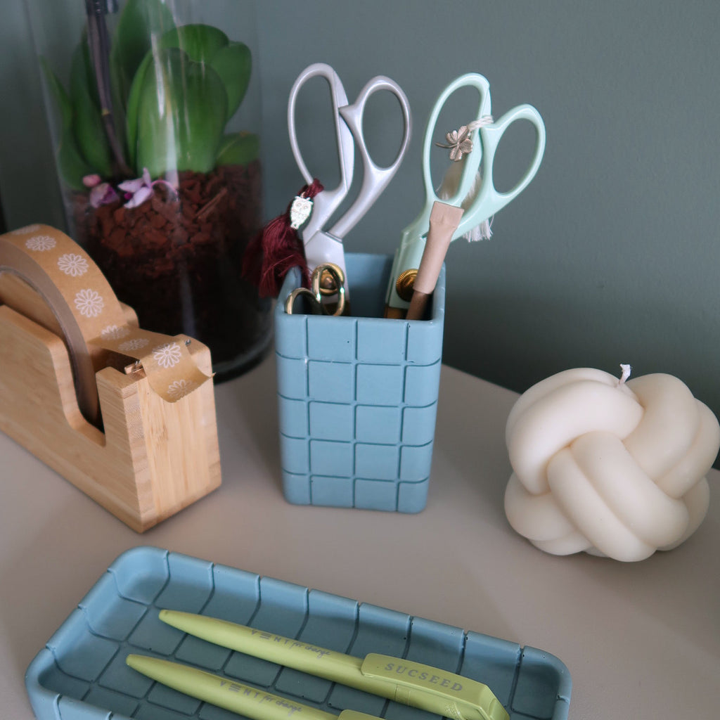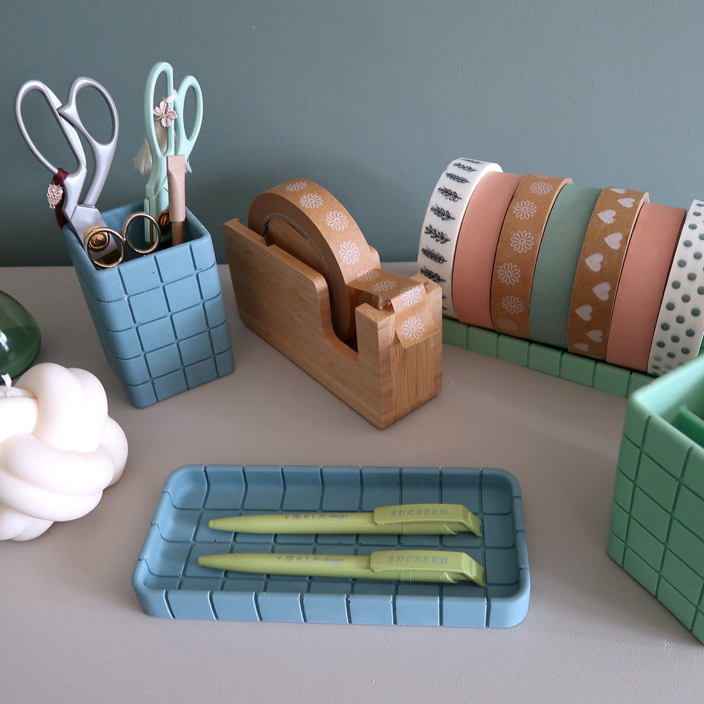 Jesmonite tray hand-poured in the UK. The catchall tray is part of Block Design’s Jesmonite Tile Collection which allows unique stackable storage. Use by the door as key dish, in the bedroom as a jewellery tray or place in the bathroom for a catchall tray. It is also the perfect way to store up to 7 x 24mm tapes or 8 stamps and inks.