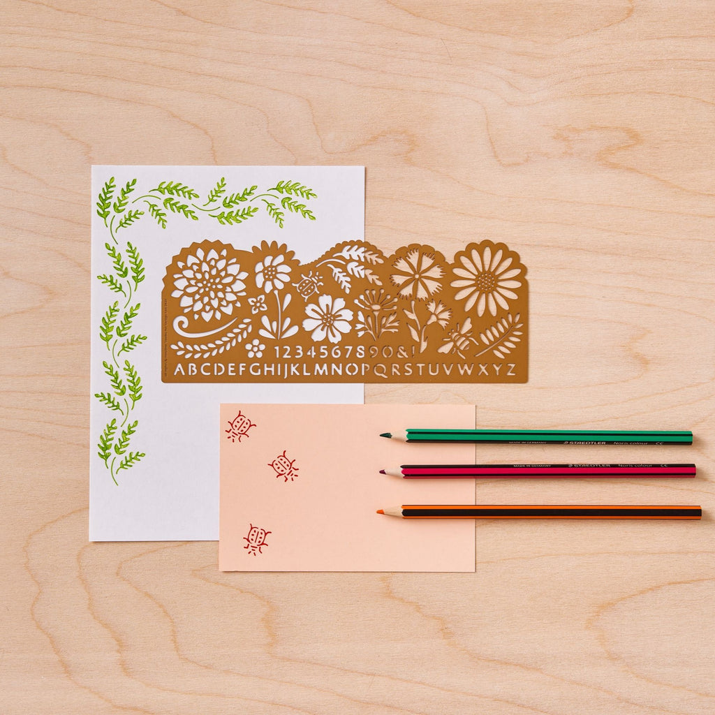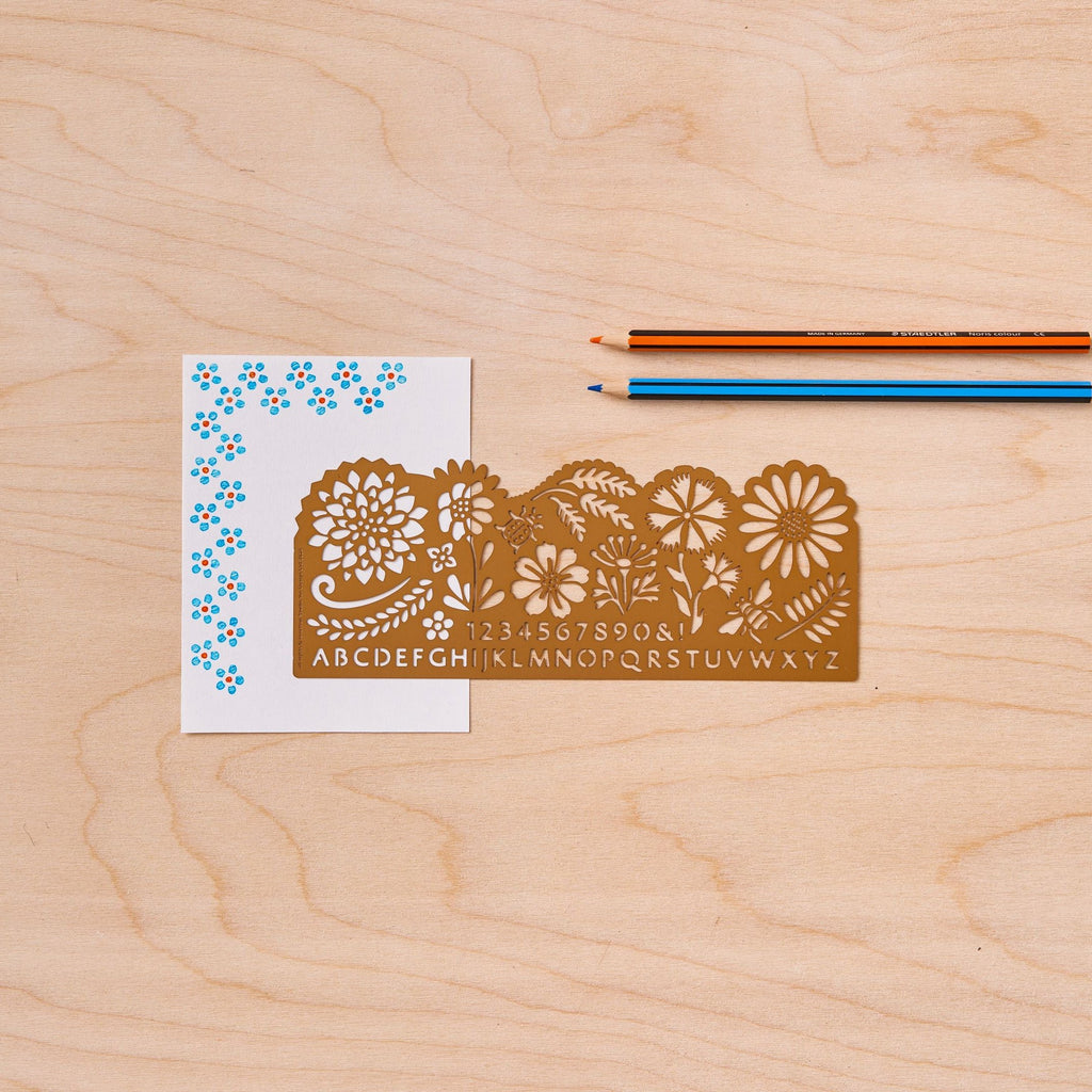 The stencil features dahlias, wildflowers, daisies, leaves and a sweet little ladybird and bee, as well as numbers and a capitalised alphabet. Not only that but the outer edges can be used to create decorative borders. This array of beautiful botanicals, ensures the combinations of floral illustrations you can create and ways to use the stencil are endless!