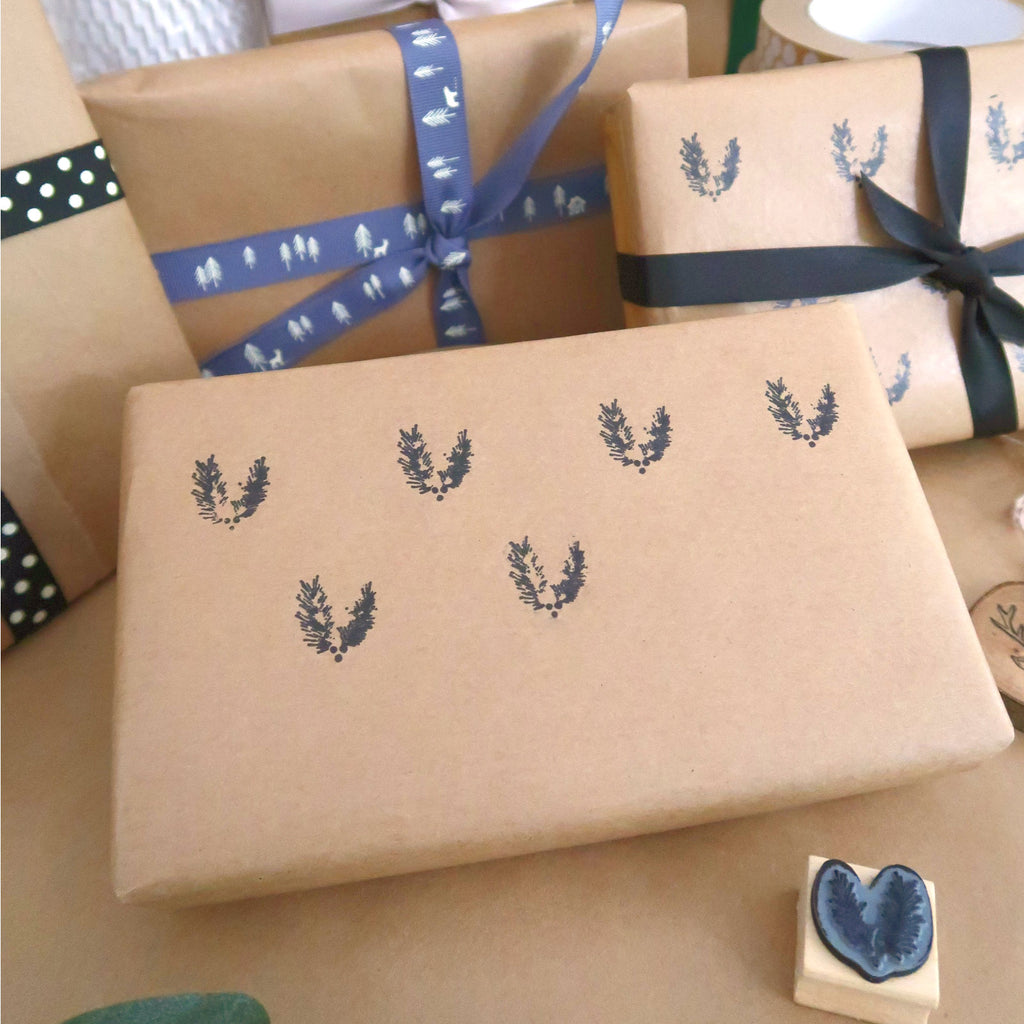 Decorate plain brown paper with this berries stamp to create your own reusable and recyclable wrapping paper.