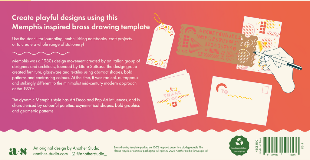 Use this Another Studio Memphis design stencil for journaling, embellishing notebooks, craft projects, or to create a whole range of stationery! The stencil can be used with felt tips, pens, and pencils.