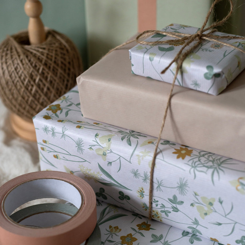 This Flower Meadow wrapping paper is 100% recyclable and PEFC certified. This stunning floral design is perfect for spring and summer gifting! Pair with paper tape, string or ribbon (we love it alongside the cream side of our apricot and cream duo paper and natural jute twine) for the final finishing touch.