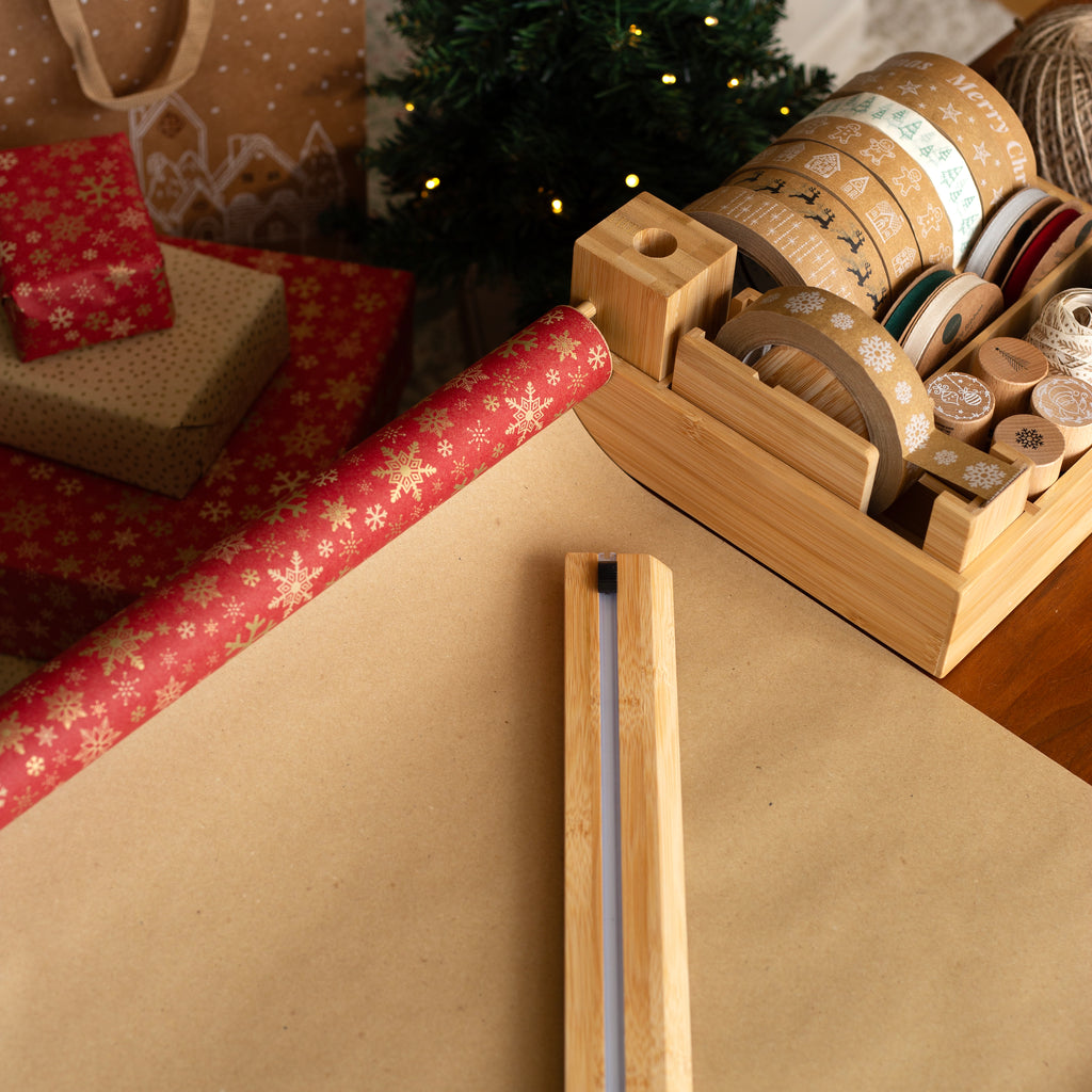 We get it, wrapping gifts can be a stress, especially during the festive season! That's why we created this kit to make gift wrapping a breeze! Say goodbye to the days of battling unruly paper rolls and wonky scissor cuts! Our Essential Gift Wrapping Kit includes a 24mm Tape Dispenser, Organiser, Paper Dispenser and Paper Cutter allowing you to dispense and cut gift wrap and tape with ease. Crafted from elegant bamboo, this bundle combines style and practicality. So whether you want to make the stress of gift wrapping a thing of the past or you are a gift wrapping enthusiast, this is the essential upgrade you've been waiting for!