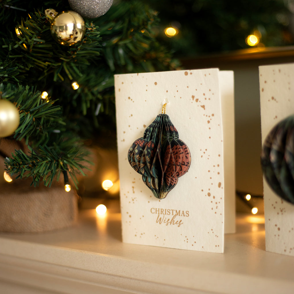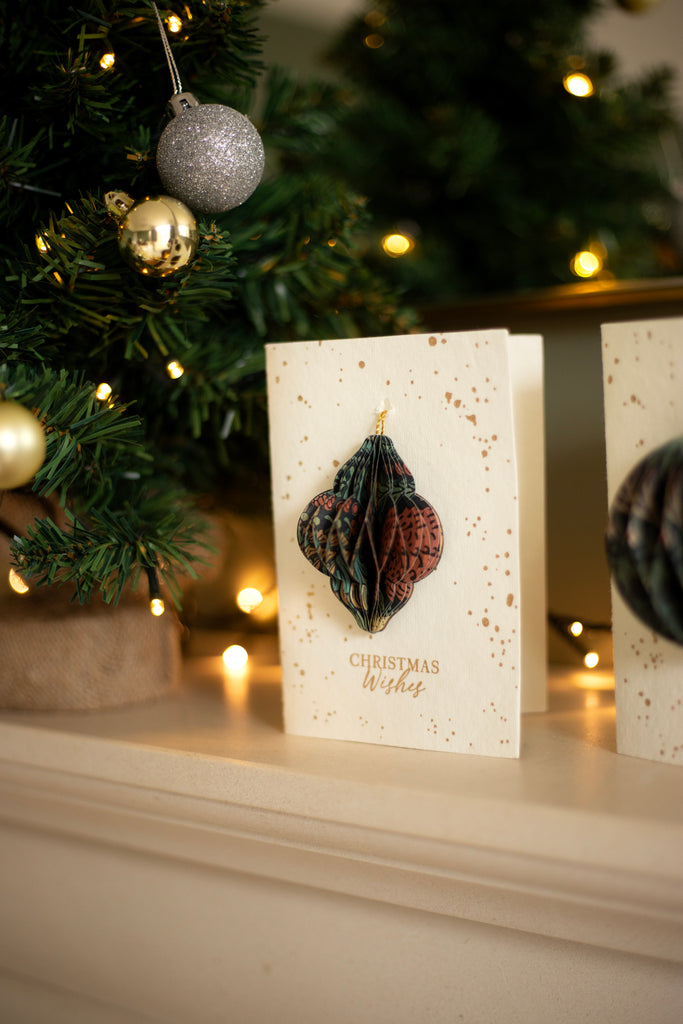 Our Paper Michi Christmas Cards are made by artisans from 100% recycled cotton paper. Each one comes with a high quality honeycomb christmas decoration with a magnetic fastening. We promise you are going to love these.