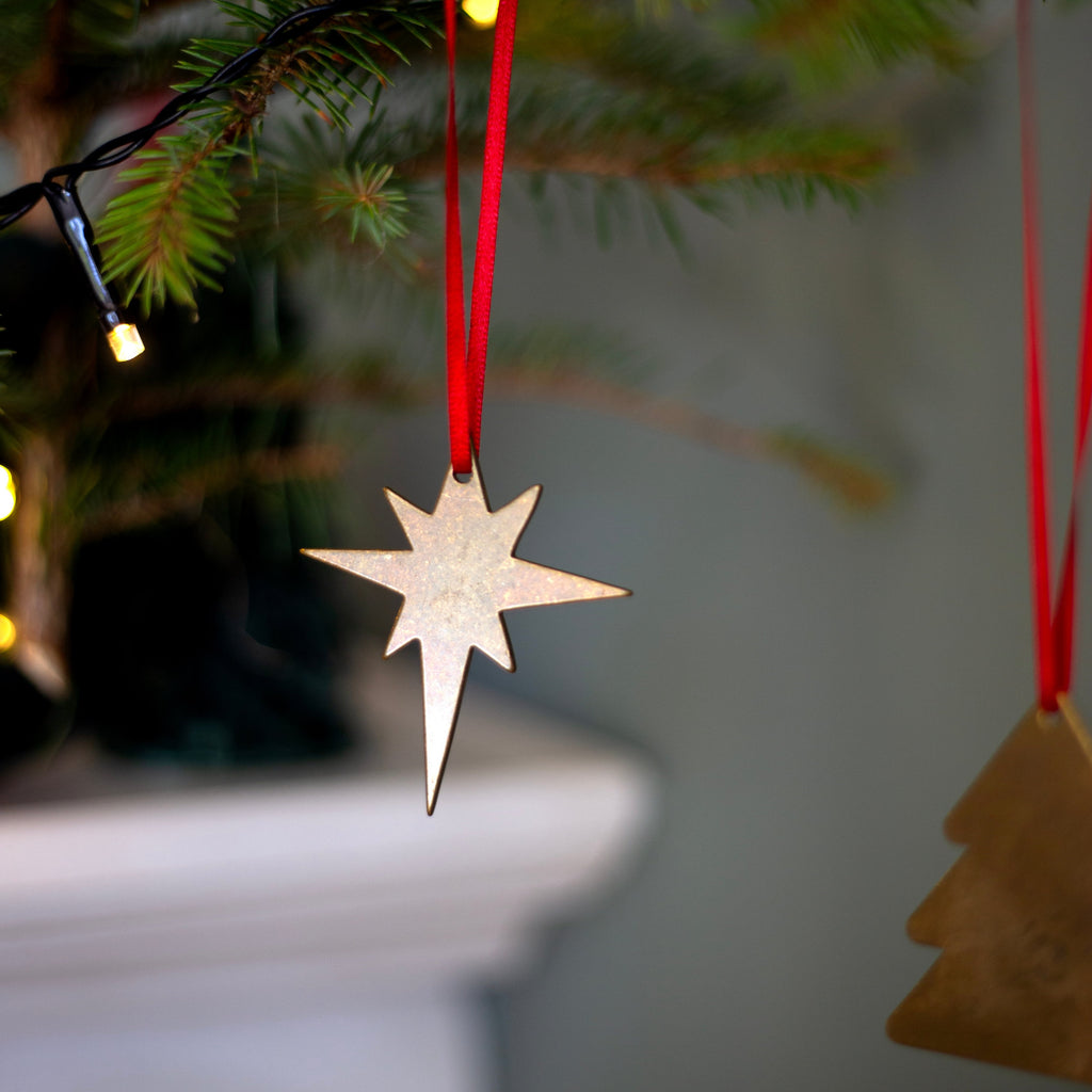 Looking for the perfect little add on to your gift giving this year? Then look no further than our collection of brass decorations. There are 3 classic festive designs to choose from and each is made from brass so has its own unique markings. They look gorgeous when attached to gift wrap (we especially love it paired with our Christmas decorations/ Message paper) and once given the recipient can enjoy the decoration for years to come. As well as being beautiful these little decorations also have an amazing story. Each is hand strung in a North London Hostel, where Pivot (a social enterprise) works with people experiencing homelessness to pivot their lives by teaching them how to craft beautiful and sustainable products.