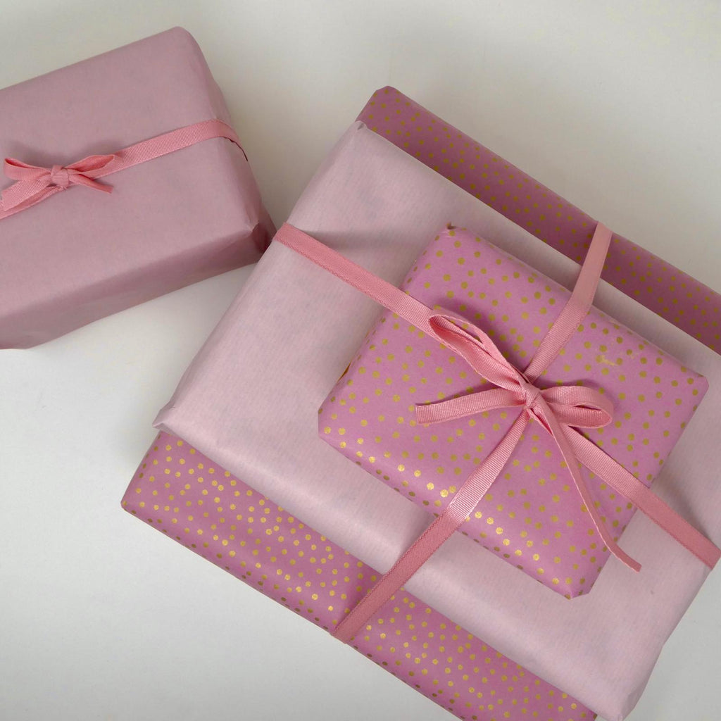 1 x 5m Roll of Pink with Gold Dot Wrapping Paper (50cm Wide)